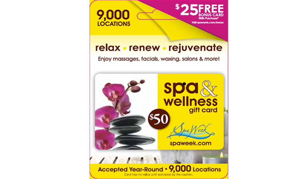 Promotion Terms and Conditions - Promotion offered at participating retailers. Offer Valid from 10/1/25 to 7/1/26. Must claim the bonus by 7/1/26. Valid only on the $50 Spa & Wellness Gift Card by Spa Week, sold at Wal-Mart or Sam’s Club locations. Subject to availability. No Rain Checks. One $25 bonus card can be redeemed per each eligible purchase of a $50 Spa & Wellness Gift Card by Spa Week purchased. The $25 bonus card expires on August 31, 2026. See gift card for details, terms, and conditions. TM and ©2017. All rights reserved. By entering your information to retrieve this bonus card offer, you agree to receive future email communications from Spa Week Media, Sam’s Club, and Wal-Mart act as the agent for the 3rd party participating retailer within the gift card shop, therefore any customer queries after purchase must be directed to the relevant participating retailers. Gift card shop products purchased with cash or credit/debit cards only. Multi-retailer vouchers/cards cannot be used to purchase these products.